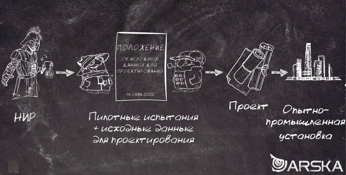 Подобно человеку, любой технологический процесс растет, и рост этот называется «масштабированием». В идеальном мире при масштабировании новой технологии ей необходимо последовательно пройти четыре основные стадии – отрицание, торг, гнев, принятие. Хотя нет, это стадии химиков, работающих в лаборатории, а вот технология проживает следующие этапы: Так выглядит любой технологический процесс в своем развитии «от пробирки до завода», и понимание этого развития важно для любого специалиста или менеджера в отрасли, потому что именно на стыках четырех названных стадий скрыто наибольшее количество задач, решаемых при создании новых или модернизации существующих производств, а также развитии отрасли в целом. Это стадия лабораторных исследований, когда в результате многочисленных ночных соитий умов химиков-ученых и будет зачат в пробирке зародыш будущего процесса, установлены его основные закономерности, необходимые для жизни диапазоны давления, температуры, цвет кожи и пол. Стадия пилотных ис