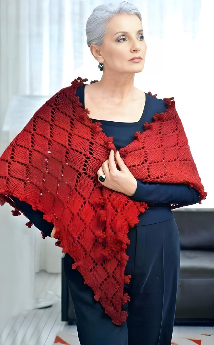 В прохладное время года зрелую даму очень выручит такой аксессуар как шаль. Благодаря ей можно утеплиться и сделать образ более элегантным. Конечно же, речь не идет о «бабушкиной» шали. Дизайнеры предлагают множество вариантов: длинные и укороченные, в виде накидки, с интересной драпировкой, с асимметричным кроем.