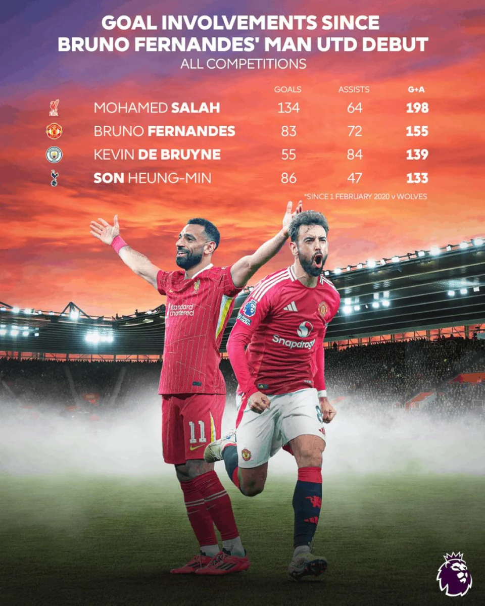 Бруну Фернандеш − лидер «МЮ». С момента его дебюта только один игрок АПЛ набрал больше по «гол + пас», чем он