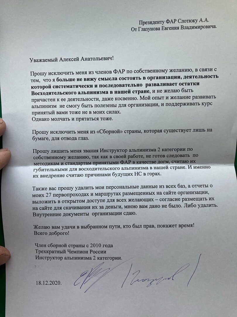 В последнее время гибло много российских альпинистов (братья Глазуновы, Надя Оленёва, пятёрка на Дхаулагири: А. Душейко, О. Круглов, Вл. Чистиков, М. Носенко, Дм. Шпилевой), в т. ч. обладателей "Золотого ледоруба России" и даже международного "ЗР" (Сергей Нилов, Дмитрий Головченко, Вячеслав Иванов, Александр Ручкин), а преемственности - не побоюсь этого слова - ВЕЛИКОЙ советской альпинисткой школы так и не возникло. С каждым годом альпинистов всё меньше. СССР проводил альпиниады, выделял путёвки в альплагеря, массовая литература прославляла и популяризировала этот спорт. У нас же даже об Анатолии Букрееве - легенде - многие узнали после выхода голливудского фильма "Эверест". Теперь же на книги о восхождениях собирают всем миром через платформы. И даже то, что создают альпинисты своими руками, гробят бюрократия и попытка выжать деньги из всего.