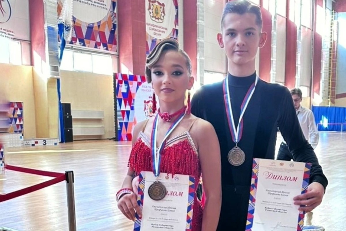 Дважды на пьедестал почета поднялись Ярослав Ржематорский и Ксения Трофимова. В Рязани прошел крупный турнир по танцевальному спорту. Кубок губернатора Рязанской области собрал на площадке Академии единоборств более 800 пар и солистов разного возраста и класса мастерства из 31 региона. Тверскую область на этих соревнованиях представляли воспитанники ТСК «Престиж» из региональной столицы. Наибольшего успеха добились Ярослав Ржематорский и Ксения Трофимова (на заглавном снимке). Воспитанники Михаила Соловьева и Кристины Цветковой заняли второе место в категории «Юниоры-2» по латиноамериканской программе танцев среди пар до D-класса мастерства. В группе «Юниоры-2+1» также по Латине среди дуэтов до D-класса они стали бронзовыми призерами. В шаге от пьедестала остановились Глеб Савкин и Елена Радёвкина. В категории «Взрослые+Молодежь» по европейской программе танцев среди пар до А-класса мастерства тверские танцоры финишировали на четвертом месте итогового протокола.