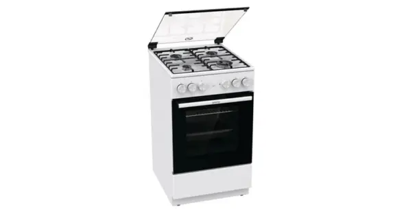 Топ продолжает Gorenje GG5A12WF-B. Плита с глубиной 59,4 см оснащена удобными поворотными переключателями. Варочная панель включает четыре конфорки с разными размерами и мощностью, а также функцией электроподжига.