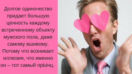 Долгое одиночество придает большую ценность каждому встреченному объекту мужского пола, даже самому вшивому. Потому что возникает иллюзия, что именно он – тот самый прЫнц.