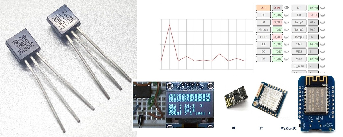 Наша конструкция будет получать значение с трех датчиков температуры