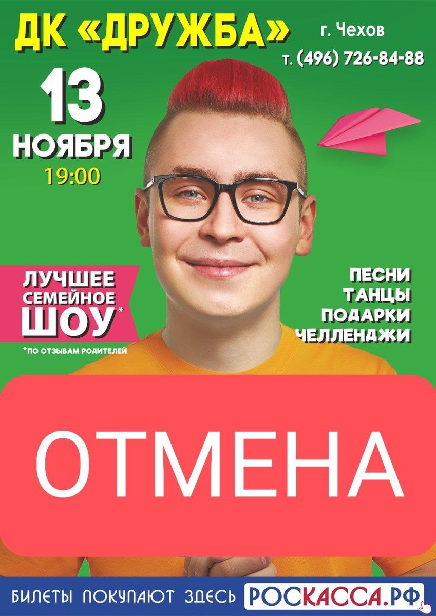 ВАЖНАЯ ИНФОРМАЦИЯ ОТМЕНА КОНЦЕРТА КОБЯКОВ в ДК Дружба г. Чехов