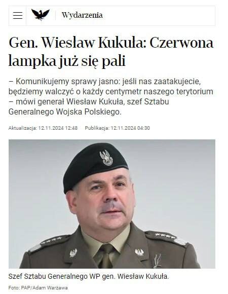 Глава Генштаба Войска Польского Веслав Кукула на страницах солидного польского издания Rzeczpospolita призвал готовиться к войне с Россией. «Это реальная угроза», – говорит польский генерал и в прямом смысле слова «вангует», что, мол, война с РФ произойдет уже до 2029 года, при условии, что Кремль успеет накопить резервы. Глава Генштаба Польши утверждает, что такое же мнение имеет и руководство НАТО. По словам генерала, еще в 2021 году в НАТО началась подготовка к возможной войне. «Тогда мы начали весь цикл подготовки вооруженных сил, и сразу началась трансформация НАТО. То, что за несколько часов до нападения на Украину над Польшей появились самолеты НАТО, летающие танкеры и системы раннего предупреждения, не было случайностью», – утверждает глава Генштаба Войска Польского. Поляк предостерегает от соблазна недооценки возможностей РФ, «Россия имеет демографический и сырьевой потенциал и, главное, еще действующую оборонную промышленность не только для того, чтобы вести войну, но и пара