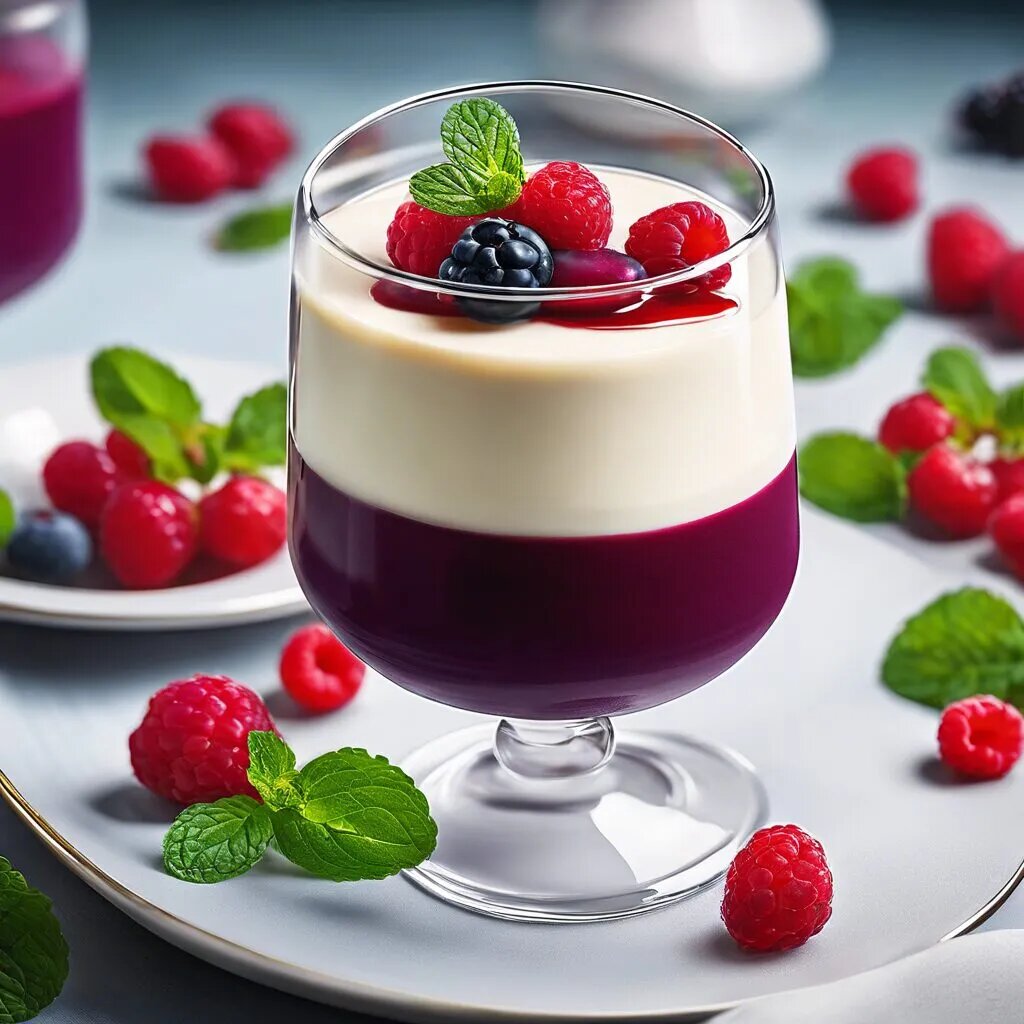 Ингредиенты: - 500 мл сливок (33-35%) - 100 мл молока - 100 г сахарного песка - 10 г желатина (или 3-4 листа) - Ванильный стручок или 1 ч. л. ванильного экстракта - Фрукты или ягодный соус для подачи (по желанию) ### Приготовление: 1. **Подготовьте желатин:** - Если используете порошковый желатин, замочите его в 50 мл холодной воды на 5-10 минут. Если используете листовой желатин, замочите его в холодной воде до размягчения. 2. **Смешайте сливки и сахар:** - В кастрюле на среднем огне смешайте сливки, молоко и сахар. Если используете ванильный стручок, разрежьте его вдоль и добавьте в смесь. Доведите до кипения, постоянно помешивая. 3. **Добавьте желатин:** - Как только смесь начнет закипать, снимите с огня. Удалите ванильный стручок, если вы его использовали. Добавьте замоченный желатин и хорошо перемешайте до полного растворения. 4. **Разлейте по формам:** - Перелейте смесь в порционные формочки или стаканы. Охладите до комнатной температуры, затем поставьте в холодильник на 4-6 часо