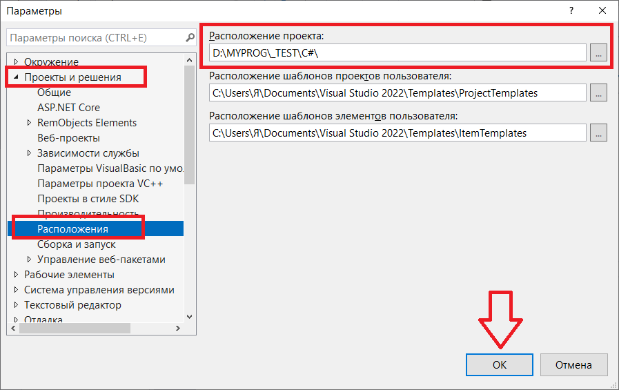 Местоположение программ по умолчанию в Visual Studio