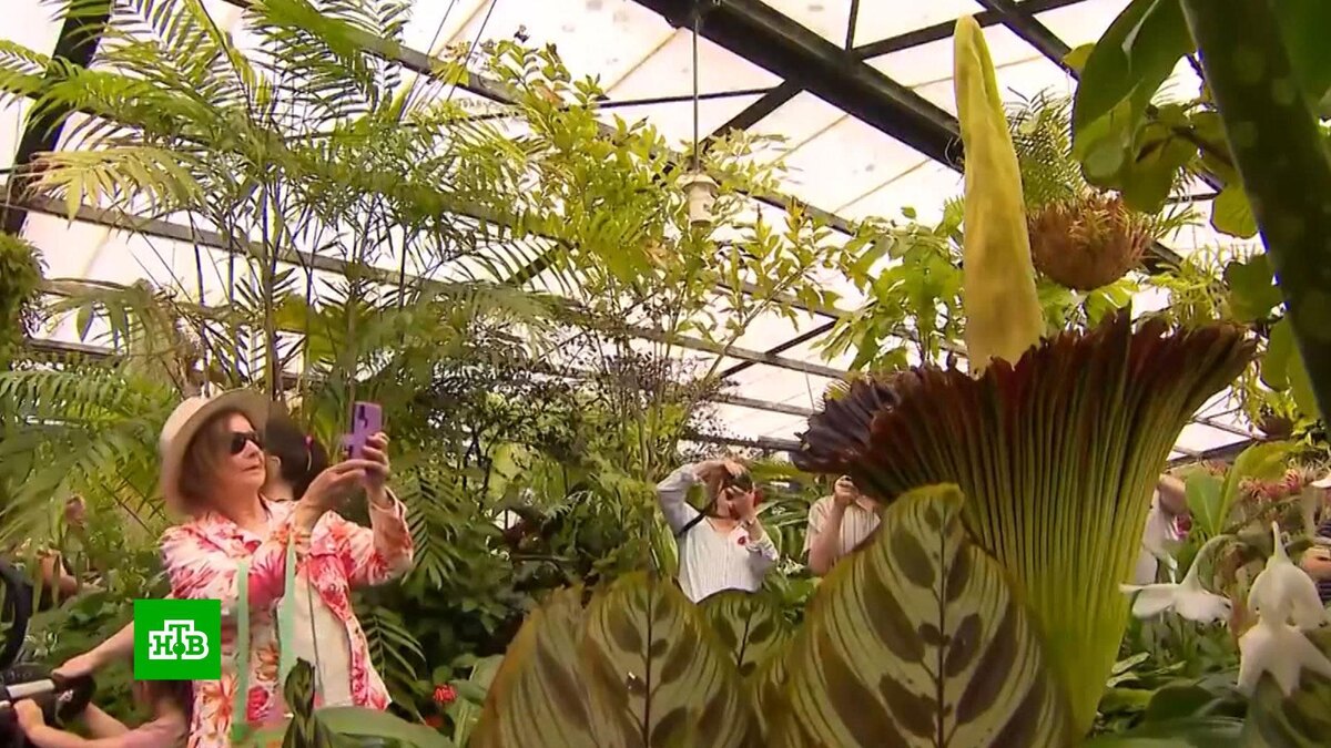 [ Смотреть видео на сайте НТВ ] Многометровые очереди выстроились в австралийском Джилонге, чтобы увидеть Amorphophallus titanum. Аморфофаллус титанический − гигантское растение с Суматры, которое цветет раз в 10 лет и только в течение приблизительно 48 часов. Экзотическое растение, известное в народе также под названием «дьявольский язык» и «трупный цветок», знаменито не только своим редким цветением и гигантскими размерами, но и ароматом. Очевидцы утверждают, что это смесь запахов тухлых яиц и рыбы. Титул растения с самым неприятным запахом неизменно привлекает в ботанические сады толпы заинтересованных посетителей. Хозяевам оранжереи в Джилонге даже пришлось перейти на круглосуточный режим работы, чтобы цветок успели увидеть и понюхать все жители и корреспонденты местных телеканалов. К слову, вместо посетителей запах должен привлекать опылителей, таких как жуки и мухи. На родине, в Индонезии, растение находится под защитой закона, в дикой природе осталось всего несколько сотен его э