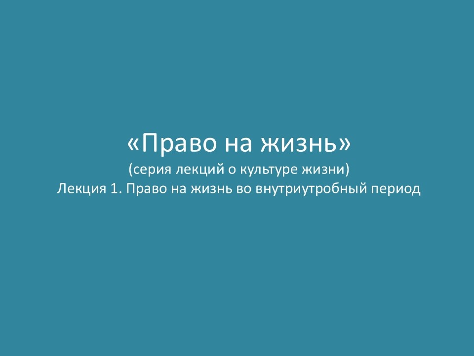 Презентация для учителей. "Право на жизнь во внутриутробный период. Культура жизни".