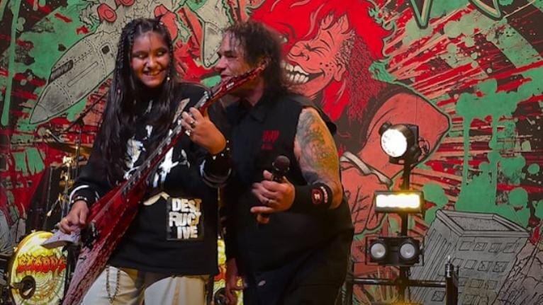 Новая гитарная сенсация 11-летняя Maya Neelakantan из Индии на сцене с Exodus