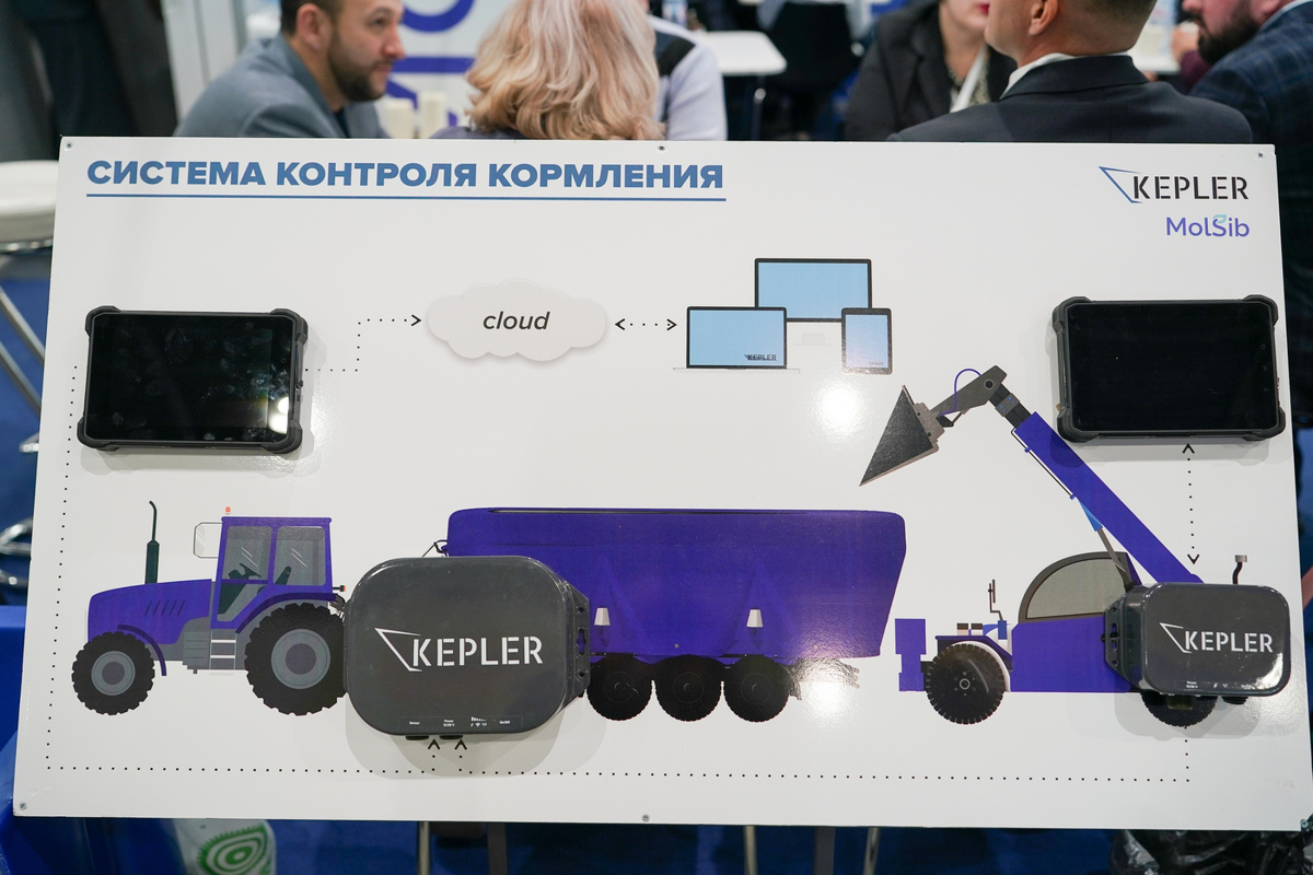 На выставке руководитель продаж капитального оборудования Иван Прилепский представил систему взвешивания и контроля кормления для современной фермы от российского разработчика оборудования и ПО - компании Kepler. Kepler - это система, состоящая из весового контроллера, который считывает данные с тензодатчиков и передает их на связанный планшетный компьютер с программным обеспечением Kepler, который позволяет точно собрать ингредиенты корма для сельскохозяйственных животных по заранее рассчитанным и внесенным в программу рационам. После загрузки первого компонента, система передает команду к загрузке следующего компонента и начинает процесс смешивания ингредиентов. Так система последовательно действует на всем этапе подбора и смешивания кормов - от момента погрузки первого ингредиента и до раздачи животным. По окончании смены зоотехник получает данные о времени и реальном весе для контроля правильности приготовления и дальнейшего анализа рационов. Возможности системы Kepler: ⚡️программ