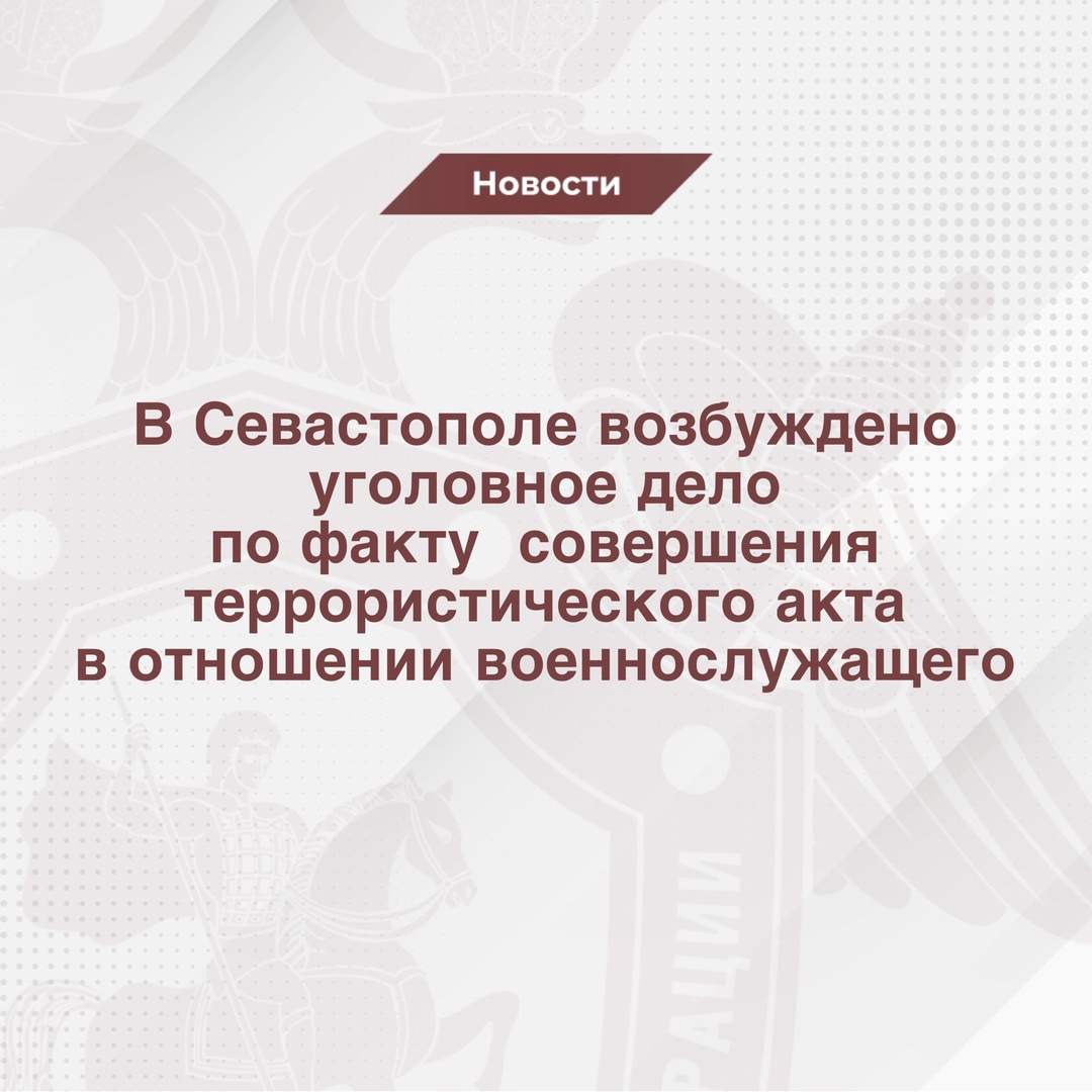 Предварительно установлено, что сегодня в Гагаринском районе Севастополя в результате срабатывания самодельного взрывного устройства, прикрепленного к днищу автомобиля, погиб военнослужащий Вооруженных сил Российской Федерации.