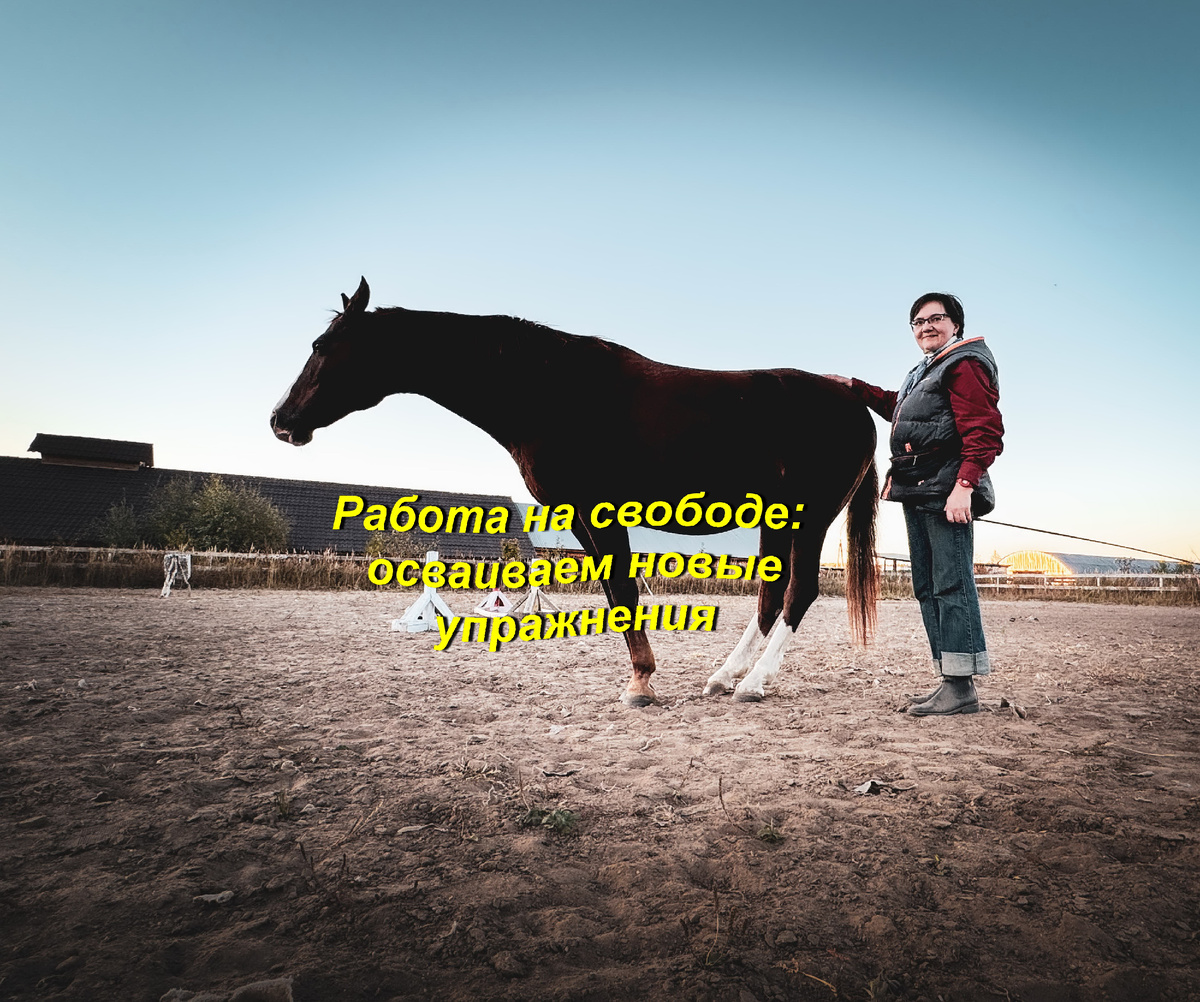 Всякий раз, когда я работала с Белкой на свободе, мы либо двигались рядом, либо Белка бегала вокруг меня на том расстоянии, которое выбирала она сама. Меня это устраивало: Белка выполняла всё, что я просила — меняла аллюры, останавливалась, разворачивалась по команде. Что еще нужно? Разве что, не особо стремилась подходить ко мне в центр, но я успокаивала себя: «Ну и ладно! Не убегает же! Ну… почти».