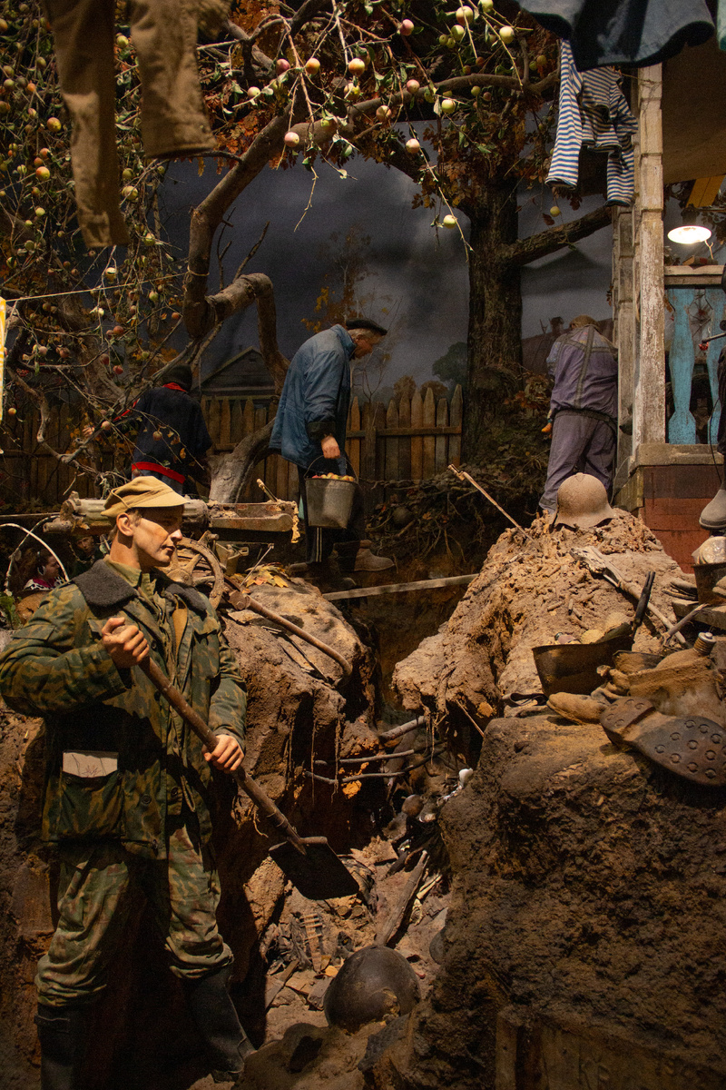 На днях посетил иммерсивную инсталляцию в Ленфильме. Инсталляция постоянная и довольно масштабная — включает в себя 15 залов, многие из которых два этажа в высоту и довольно большие по площади. Выдается аудиогид. В нем рассказывают исторические факты голосами профессиональных актёров. Залы посвящены знаковым событиям великой отечественной войны, участие в которых принимали кинооператоры, режиссеры, актеры. Примечательно то, что предметы можно аккуратно трогать и рассматривать — это погружает в атмосферу события еще больше. Создатели очень хорошо поработали со светом и классно акцентировали важные моменты. Сюжетная линия начинается с Невского пятачка времен 90-х. Когда начались раскопки, способствующие в последствии созданию выставки. Следующий зал — события пятачка времен войны. Оборона и рассказ про молодых парней 15–17 лет, воевавших наровне со взрослыми. Минуя зал с небольшой инсталляцией подвалов Ленфильма, использовавшихся как бомбоубежище, мы попадаем в цех завода в Колпино —