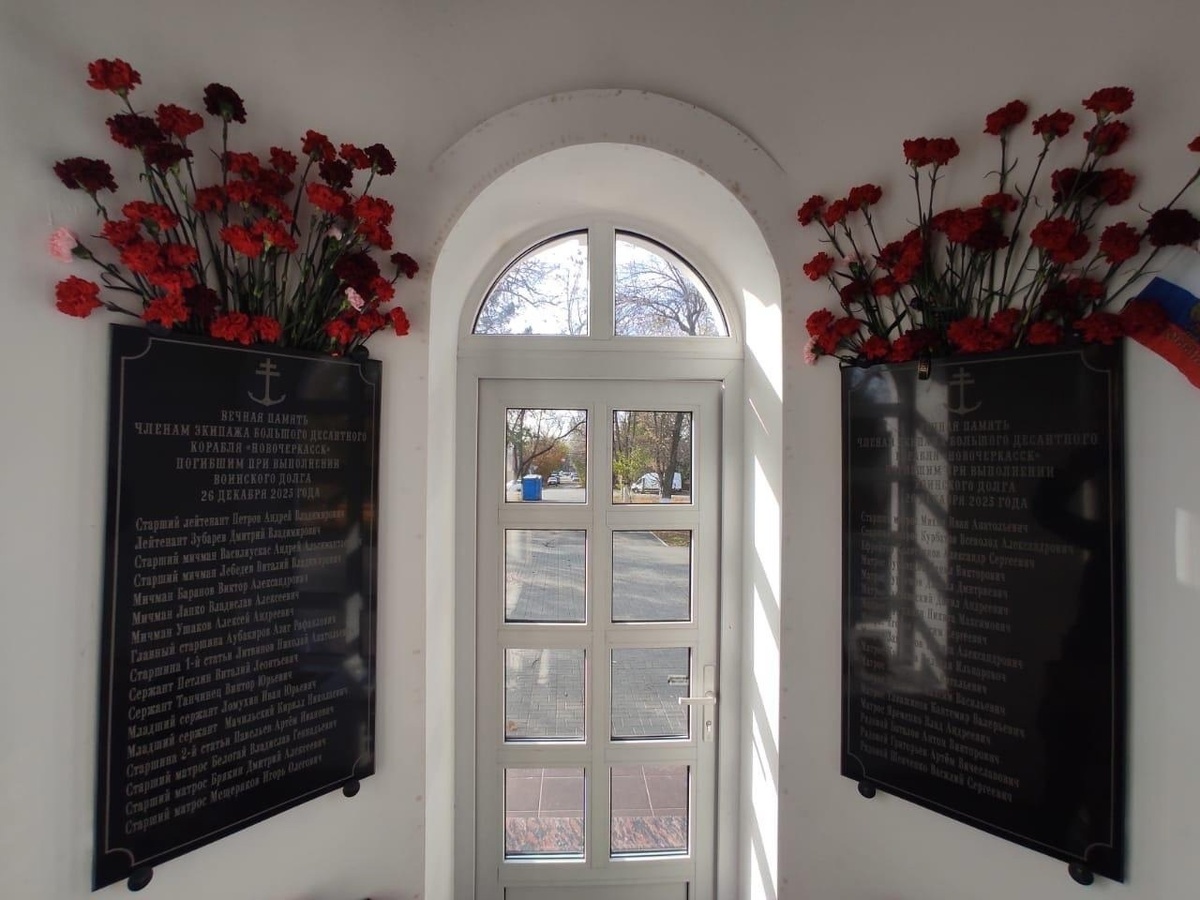 В Новочеркасске открыта мемориальная доска с именами 34 членов экипажа большого десантного корабля «Новочеркасск», погибших в результате ракетного удара по Феодосии в декабре 2023 года. Фотографию мемориальной доски опубликовала Элла Васильева, мать одного из моряков Всеволода Курбатова, который был посмертно награжден орденом Мужества. «Горжусь тобой, сынок. Для меня большая честь быть твоей мамой», – написала Васильева в соцсети. Ранее ФСБ задержала агента украинских служб, передававшего противнику данные о военных объектах Феодосии, использовавшиеся ВСУ при ракетных ударах по Крыму. В прошлом году ударом британских ракет в Феодосии был уничтожен БДК «Новочеркасск». Военный обозреватель Виктор Баранец утверждал, что ЧП обернулось десятками погибших и раненых. Автор: Виктор Орлов
