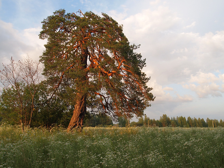 В предшествующей публикации рассказал о реликтовых дубах, произрастающих на территории Ивановской области. Теперь дело дошло и до сосны. Без сомнения, сосна является одним из любимейших деревьев у человека. Своеобразие внешнего облика сосен, их способность выделять ароматную смолу, запах смолистой древесины издавна делали их объектом сказок, ритуальных церемоний и поклонений. Целебные свойства плюс возможность разнообразного использования получаемых от неё продуктов для жизнедеятельности людей – благодаря этим качествам сосна получила достойный отклик в легендах, преданиях и фольклоре. Сосна пришла к нам из незапамятных времён. Она из палеозойской эры, ей почти 300 миллионов лет. Росла сосна, когда не было ещё на земле зелёных лиственных лесов. Поэтому сосну с полным правом можно назвать прародительницей лесов. Сосна обыкновенная (лат. Pínus) заслуженно возглавляет обширное семейство сосновые, в которое входят еще ель, пихта, кедр, лиственница и многие другие. Все отмечают, что у сосно