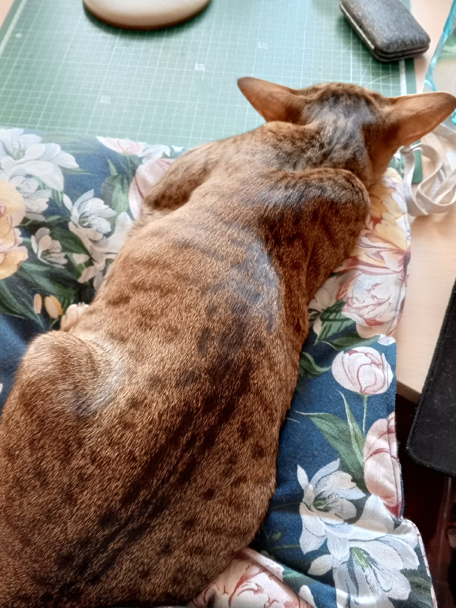 Необычная история началась больше двух лет назад, когда в нашем доме появилась трёхлетняя ориентальная кошечка по имени Эмма. С первого дня стало ясно: эта кошка — особенный персонаж с характером, непохожим на всех предыдущих наших пушистиков. Первое знакомство с Эммой было непростым. Она оказалась невероятно общительной, но совершенно не ручной. Первые месяцы взять её на руки был настоящий аттракцион — она мгновенно отталкивалась лапами и стремилась сбежать. Первые успехи пришли примерно через полгода. Эмма научилась сидеть на руках примерно от 3 до 5 секунд, при этом громко мурлыкая. Несмотря на сопротивление, я продолжала брать её на руки, и постепенно, очень медленно, кошка начала привыкать к такому общению. Интересный момент в поведении Эммы: когда её берут на руки, создаётся впечатление, что держишь ветвистую корягу. Она не знала, как себя вести, не могла расслабиться и не понимала, куда деть лапы, растопыривала из в разные стороны и вытягивала. Не знаю почему так делала, хотя