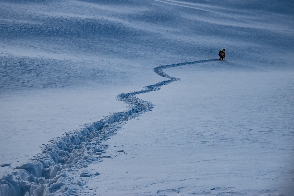 - прошли "провал" и одну сложную веревку траверса по скалам. До ночевки за "провалом" оставалось примерно 4 веревки (2 по скалам, 2 по крутому снегу), каждая следующая проще предыдущей;
