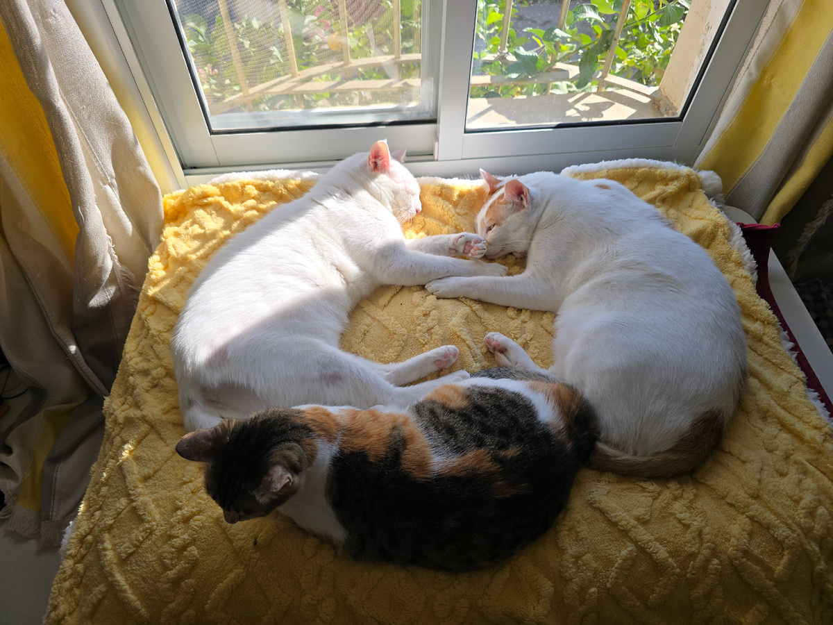 Ириска наела пузико, такая пышечка стала. На улицу вообще не стремится, дом для неё всё! Даже не верится, ведь год назад она бегала по огромному двору, ловила полёвок, ящериц и мелких змей. Носилась по большой территории, спала в персональном домике и играла на деревьях.