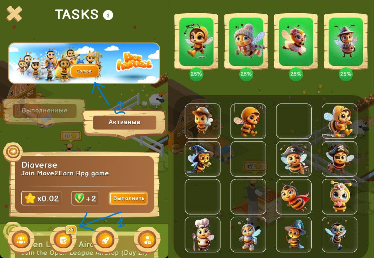 Bee Harvest - новоиспеченный проект Telegram, который имеет свой токен $AMBR. В игре имеется ежедневное комбо пчел, которое находится в разделе заданий. Его всегда можно найти на моем канале. Проект только недавно вышел с бета-теста и сейчас самое время присоединиться. Награда за правильное комбо пчел составляет ваш 4-х часовой доход. Поэтому не забывайте прокачивать вашу пасеку по максимуму. Vk I Teletype | Telegram
