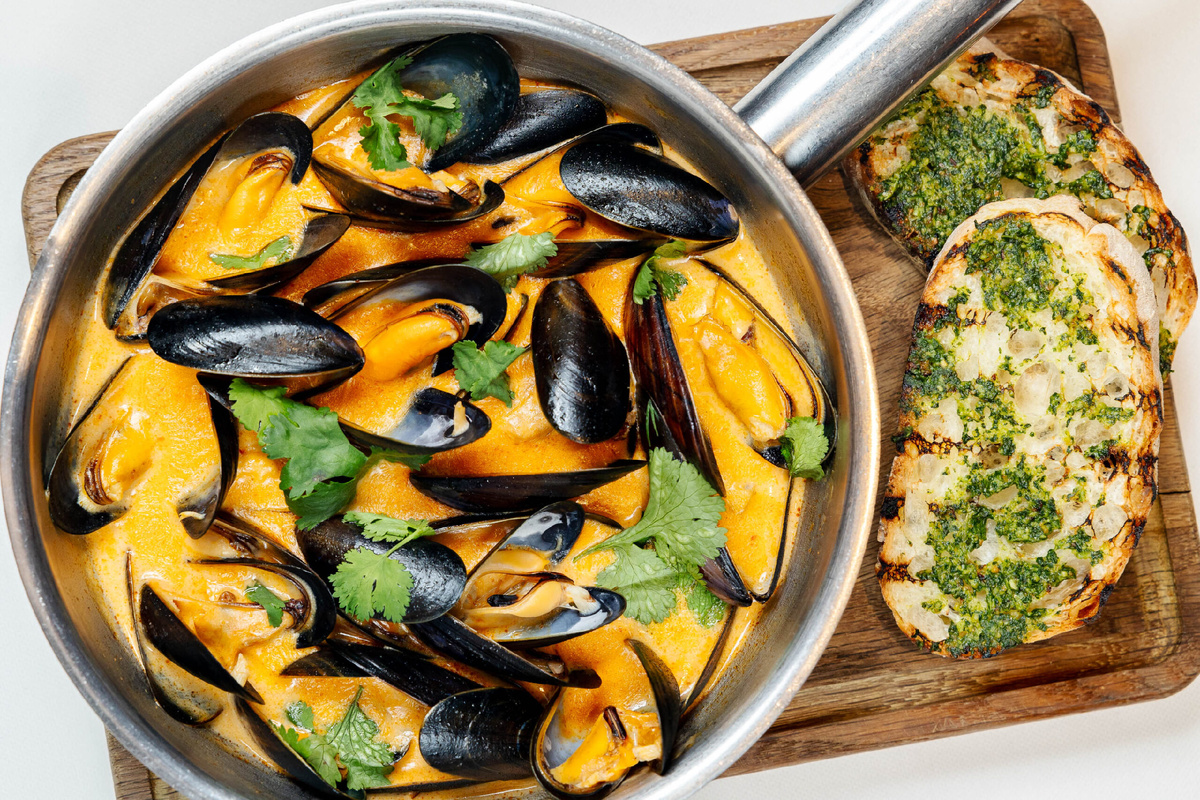 Добрый день, уважаемые читатели! Вы на канале "Подбери Слюни" Расскажу рецепт мидий в соусе Том-Ям, который недавно готовил сам. Итак, поехали! Для рецепта понадобятся: мидии в створках паста том ям кокосовое молоко кукурузный крахмал соль Для начала мидии нужно отварить минут 15 в кипящей солёной воде, чтобы створки открылись и мидии проварились Кто-то говорит, что не открывшиеся мидии нельзя употреблять в пишу, но нет, можно, так что не переживайте. Просто подковырните ножом и откройте. Только имейте в виду, что внутри будет горячая вода после варки, которая тут же выльется после открытия мидии Далее мидии нужно зачистить, а именно оторвать одну половину раковину, к которой НЕ крепится мидия, а также удалить водоросли, которые не доел моллюск)) Водоросли встречаются не во всех мидиях, но лучше просмотреть все. Сваливаем все зачищенные мидии в ту же кастрюлю в которой они варились (предварительно слив всю воду), либо в глубокую сковороду. Смешиваем в отдельной посуде пасту том ям, кок