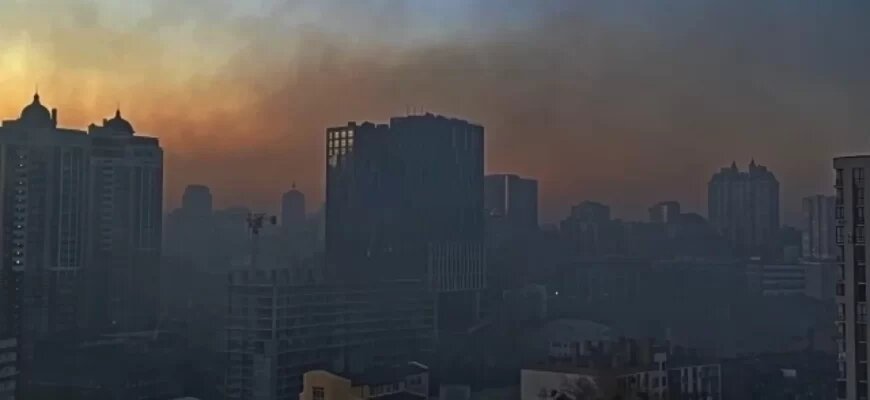 Киев окутан густыми облаками дыма после ракетных обстрелов