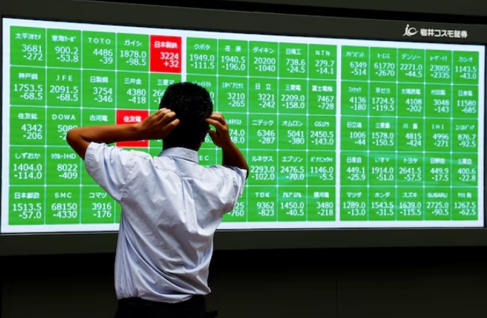 Мужчина смотрит на электронное табло котировок акций возле брокерской конторы в Токио, Япония, 2 августа 2024 г. REUTERS/Issei Kato