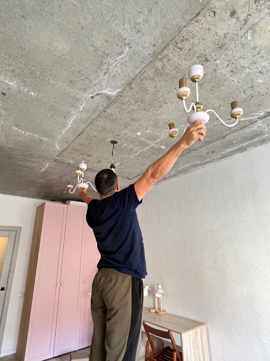 Всем доброго дня! Мы таки добираемся до потолков в квартире, пригласили мастера, который замерил площадь, озвучил сумму за работу и материал и записал нас в лист ожидания на конец ноября - начало декабря. Сами мы взяться за потолок не решились, т.к. точно не сможем осилить его быстро за 1 день. И не хочется опять разводить грязь и пыль на несколько недель у себя дома. У фирмы, в которую мы обратились очередь примерно месяц, поэтому у нас есть время подготовиться. Я уже достала из коробок свои винтажные люстры для комнаты девочек. Хотя точно не знаю, можно ли их назвать винтажными или все-таки люстры эпохи СССР. Примеряли их на днях с мужем на потолок и решали где их разместить. Мне кажется, сюда хорошо подойдут мои розовые переделанные люстры на 3 рожка. В итоге, в комнате будет 6 лампочек. Этого, думаю, достаточно для 18 кв метров. А вот куда повесить мою черную люстру в этой квартире я не придумала. На кухню она не подходит, в комнату тоже, т.к. у нее нет пары, а одной ей будет з