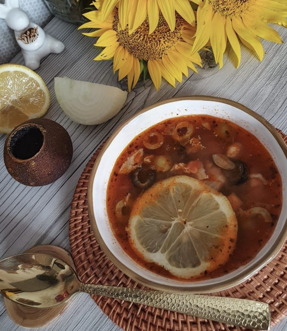 Когда ее попробовали - влюбились навсегда. Было совсем неожиданно, что такое сочетание ингредиентов будет божественно вкусным. Друзья, сначала давайте поговорим об истории вкусной и питательной солянки 🍲 История этого замечательного блюда весьма увлекательна. Говорят, что солянка появилась в России в XVIII веке под влиянием кулинарных традиций разных народов. Название происходит от слова "соль", так как основным ингредиентом в солянке является соленое мясо или рыба. Сначала солянка была популярной среди купцов и крестьян, ведь это блюдо отлично согревает в холодное время года и дает силы после тяжелого трудового дня. Постепенно солянка стала занимать почетное место на столах и во дворцах, превратившись из простого домашнего блюда в изысканную деликатесную закуску. Сегодня рецептов солянки существует множество: от классической мясной до легкой рыбной или овощной. Каждый повар или хозяйка добавляет в нее что-то свое, делая этот суп еще более интересным и вкусным. Так что не стесняйт