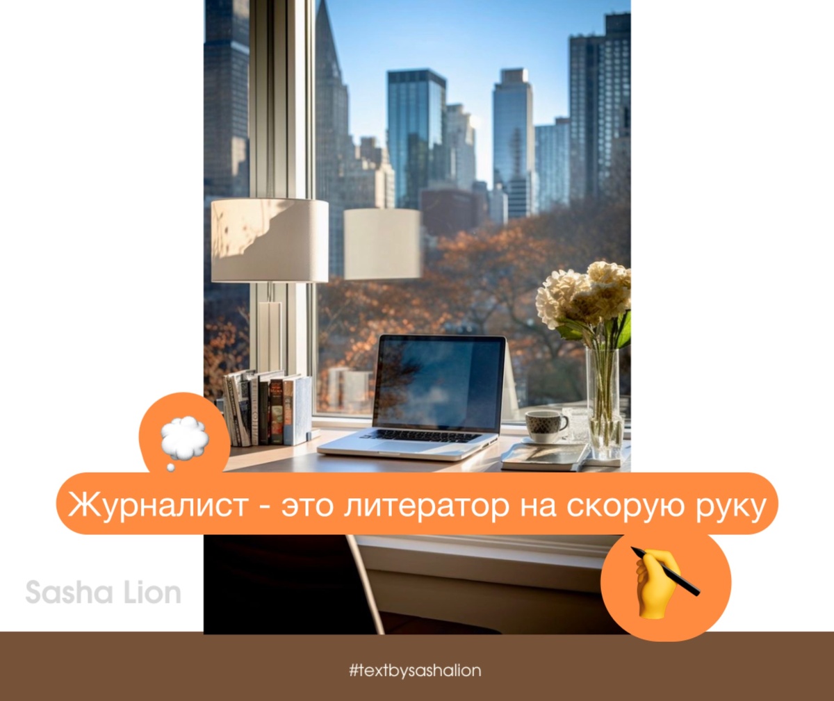 Как сказал герой из моего любимого фильма: Журналист - это литератор на скорую руку (Journalism is literature in a hurry) Что бы сказал герой того фильма, сейчас, в современное время, где реплики на тексты делает искусственный интеллект. И это уже не фантастика. Почему-то тему про новые технологии рассматривают только со стороны заказчика услуги: создать быстро текст, презентацию, дизайн и т.д. Что уже не нужен целый кабинет спецов, и что некоторые профессии просто исчезнут. Но никто не думает в это время о профессионале, как ему смиряться с этой реальностью. И тут вопрос даже не в материальном плане. Я про то, что делать человеку, если он очень любил: делать картиночки вручную, писать от руки, смешивать цвета красок кистью, двигать шкалу яркость/контраст до совершенного результата и радоваться, что сделал это сам. Одного блогера спросили на прямом эфире, как она относится к пряже из лоскутков. Она так и ответила, что это прошлый век, она это делать не умеет, и этот навык мало кому пр