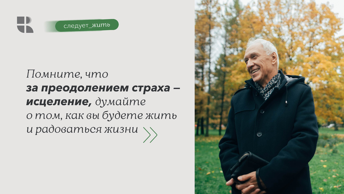 Вадим Викторович: Сейчас я чувствую, что ухудшений, последствий, побочных эффектов нет. Поэтому бояться операции не стоит. Даже в моем случае, который все признали очень тяжелым. Не бойтесь! Идите в клинику СПбГУ, доверяйте врачам и медсестрам. Для нас операция — событие, а для профессионалов — врачей каждая операция, даже самая сложная, уже отработана. Просто идите, с полным доверием к медицинскому персоналу. А готовясь к операции — верьте, что всё будет хорошо, помните, что за преодолением страха — исцеление, думайте о том, как вы будете жить и радоваться жизни.