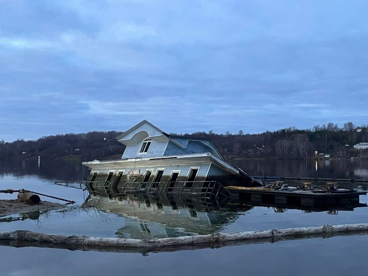Затонувший дебаркадер в Плесе достают со дна Волги. Напомним, «Дебаркадер 17» частично ушел под воду в акватории Горьковского водохранилища 4 ноября 2023 года. Занимается подъемом дебаркадера московская компания в условиях холода, ветра, как в светлое, так и темное время суток. Приступили к работам 7 ноября. Это был подготовительный день, группа рабочих подготовила площадку, убрала пирс, вытащила блоки из под воды. На третий день были заправлены подъемные подушки. Их заведут под дом, «зацепят домик» и поднимут постройку на поверхность. По последним данным, 10 ноября на место прибыл эвакуатор и с помощью тросов дом притянули к берегу. Работы продолжаются. Добавим, что дебаркадер убирают в судебном порядке. Ранее прокуратура посчитала, что дом будет представлять угрозу экологии, и подала иск в суд. По решению суда, дебаркадер должны были убрать до 1 октября этого года, однако «операция» не завершена до сих пор.