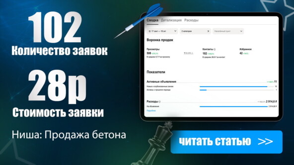 О проекте: Ко мне обратился клиент, занимающийся продажей бетона в городе с населением 30 тысяч человек. Его целью было протестировать нишу. Занять выдачу в городе и области "где идут стройки".