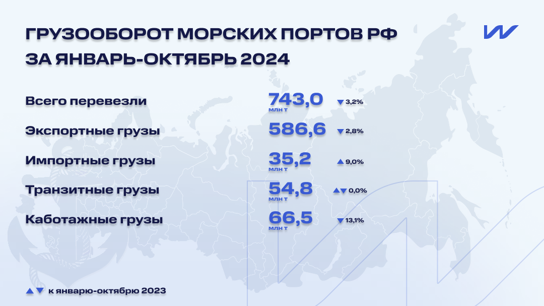 Грузооборот российских морских портов за 10 месяцев 2024 года