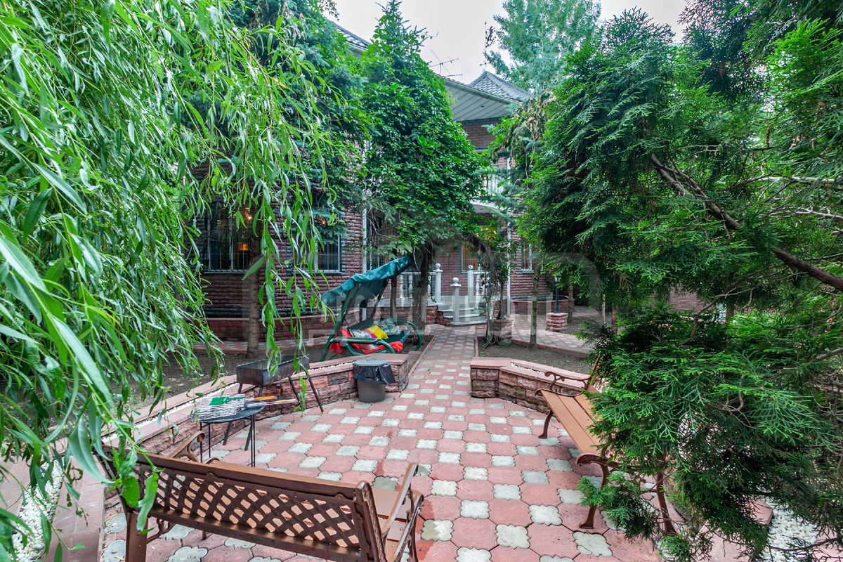 УЧАСТОК: 15 соток. Ландшафтный дизайн. Ухоженная территория. Высажены кустарники и цветы, газон. Множество хвойных и лиственных деревьев. Дорожки облагорожены. Фонтан. Беседка. Баскетбольное кольцо, качели. Мангальная зона под навесом. Парковка.