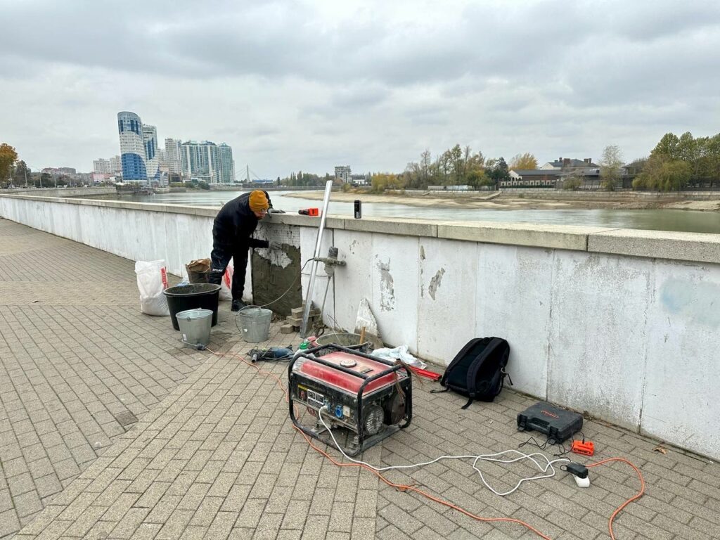 В Краснодаре ремонтируют подпорную стену на Кубанской Набережной