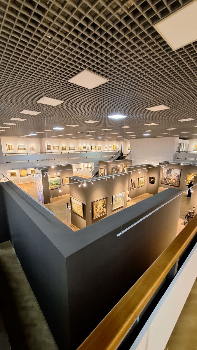 На первом этаже выставочного зала представлены монументальные работы уже признанных классиков послевоенного периода. Среди них полотна Григория Гончарова, Михаила Лихачева, Ксении Успенской, Василия Криворучко, Юрия Внодченко, Андрея Богачева.