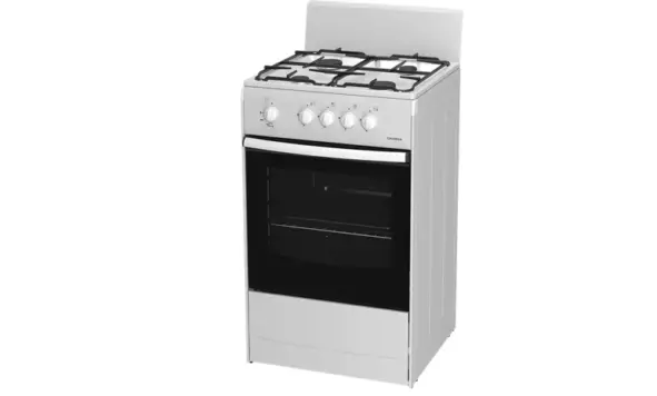 Газовая духовка этой модели регулируется в диапазоне 150-250 градусов и имеет объем 50 литров, что подходит для больших порций. Откидывающаяся дверца из закаленного стекла с двумя стеклами надежно сохраняет тепло, способствуя равномерной готовке.