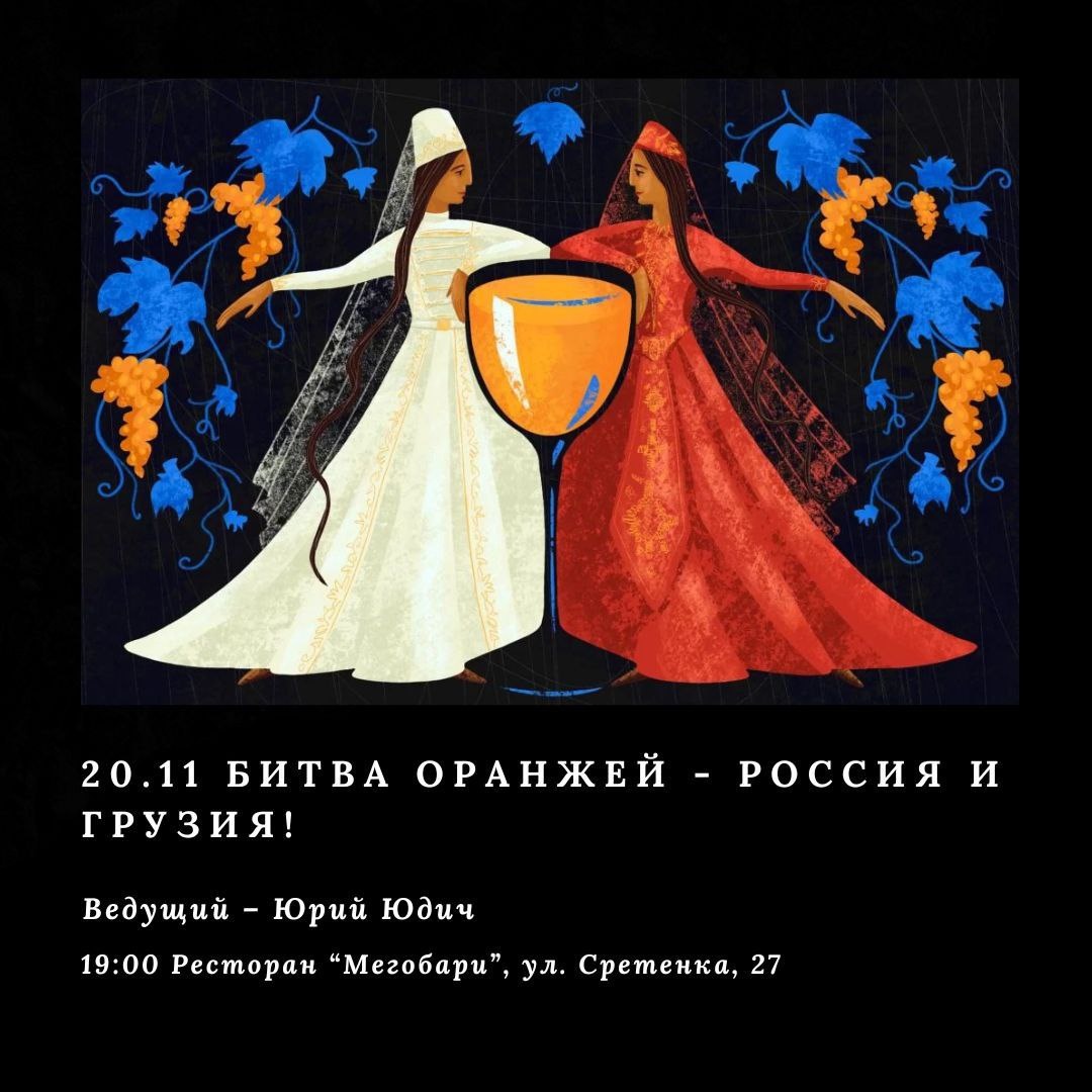 Друзья, хотя “оранжевое настроение” уже давно владеет миром, для многих эти вина остаются “терра инкогнито”. Это неудивительно, ведь у вин этого цвета уже вполне себе наметилось несколько стилей, и какой из них Вам придется по душе, можно понять только во время дегустации. Мы устроили символизированный “батл” “Россия и Грузия", в котором победителем окажется тот, кто получит в свою коллекцию дегустационного опыта 8 новых вкусов. Не упустите возможность окунуться в мир оранжей и выбрать своего фаворита! 📜В программе: ✔️ Велком дринк, дегустация 4 Оранжей из России и 4 из солнечной Грузии ✔️ Ведущий дегустации - Юрий Юдич - винный эксперт, судья международных и российских конкурсов вин, руководитель комитета ФРИО по российскому виноделию, блогер и основатель Клуба Дегустариум ✔️ Традиционные грузинские закуски и горячие блюда в прочтении шеф-повара ресторана “Мегобари” ✔️ Шутки, смех, радость общения и легкая горчинка расставания Список вин: 🍾Велком дринк - тематический сюрприз Ро