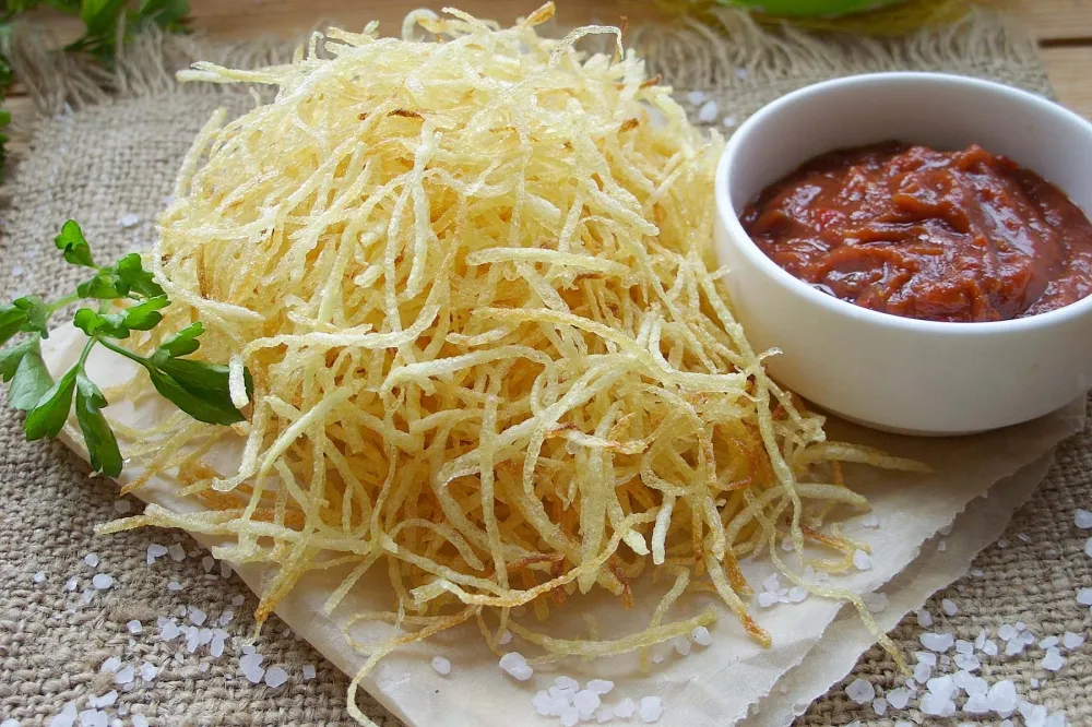 Картофель пай — это блюдо, представляющее собой хрустящие картофельные ломтики, обжаренные во фритюре до золотистой корочки. Они имеют лёгкий хруст и могут подаваться как самостоятельное блюдо или в качестве гарнира. Картофель пай также используется для приготовления салатов и закусок. Ингредиенты: Приготовление: Очистите картофель и промойте его. Натрите картофель на тёрке или нарежьте тонкой соломкой. Промойте картофель в холодной воде, чтобы удалить излишки крахмала. Откиньте картофель на дуршлаг и дайте воде стечь. Разогрейте растительное масло в глубокой сковороде или кастрюле. Выложите картофель в кипящее масло и обжаривайте, помешивая, до золотистой корочки (примерно 5–7 минут). Готовый картофель выложите на бумажное полотенце, чтобы удалить излишки масла. Посолите по вкусу. Подавайте его горячим или охлаждённым, в зависимости от предпочтений. Приятного аппетита!