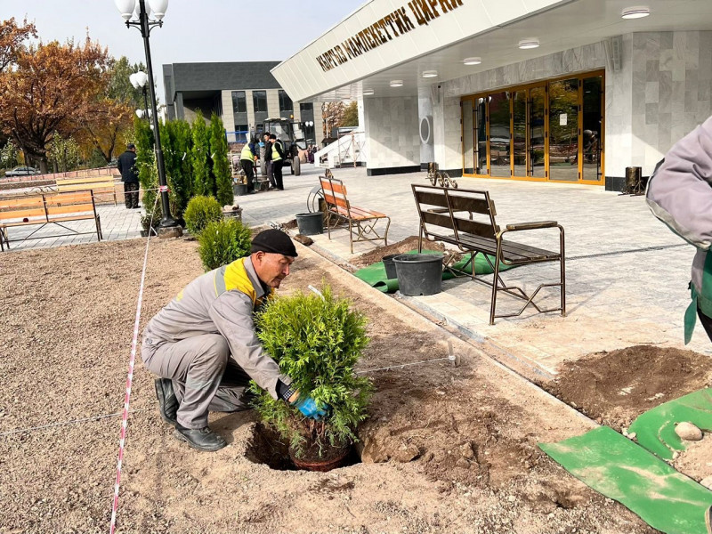 🌳 Бишкекте мамлекеттик цирктин айланасын көрктөндүрүү иштери аяктады.