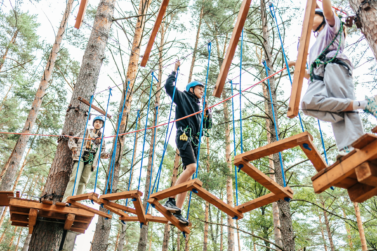 Для того чтобы ощутить себя как скалолаз или альпинист, не обязательно отправляться в отдаленные горы. Сегодня можно посетить веревочный парк, который находится на высоте около трех метров и предлагает уникальные ощущения. Веревочный парк состоит из нескольких этапов, объединенных в цепочку прохождения. Они включают в себя подъем на высоту, горизонтальные перемещения на высоте и спуск вниз. Есть несколько видов верёвочных парков. Приключенческие парки – это те парки, которые расположены в лесных массивах или же в зоне городских парков. Верёвочные парки-аттракционы – это парки, которые часто можно увидеть на небольших площадях, например, в торговых центрах или небольших скверах. Отличаются такие верёвочные парки тем, что для их монтажа часто применяются специальные опоры, тем самым подчёркивая, что деревья можно не использовать и получать не менее качественный верёвочный парк. Парки для тренингов – наиболее распространённый верёвочный вид парков. Башни для троллеев – это верёвочный парк