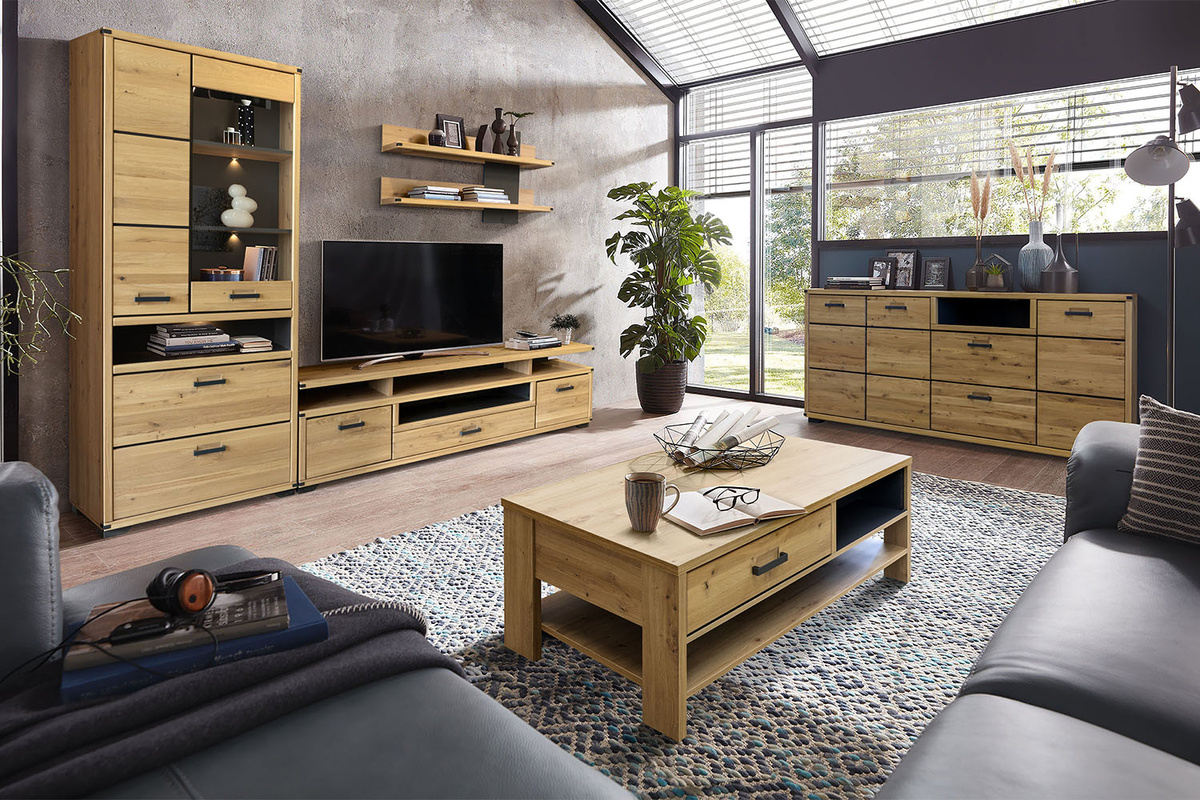 Модульная коллекция «Генуа» от Пинскдрев представляет собой отличное решение для оформления гостиной в стиле лофт. Сочетание массива дуба с масляно-восковым покрытием и прочного каркаса из ЛДСП делают эту мебель надёжной, практичной и долговечной. «Генуа» – это не просто мебель, а настоящая часть интерьера, способная придать дому особый характер и атмосферу, где городской лофт встречается с природным уютом.