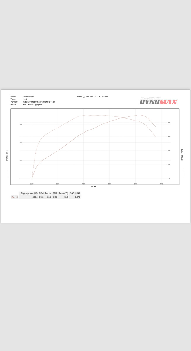 AUDI A4 Allroad клиент обратился к нам для настройки автомобиля STAGE 3. Раннее клиент заказал и установил турбину,интеркулер и downpipe, так же была задача настроить и реализовать Launch control. Клиент сам предложил произвести настройку на диностенде у Dyno_kzn так как погодные условия не позволяли произвести это на дороге. Заводские - 211 л.с, 350 нм
