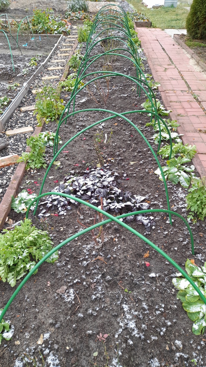 Ни для кого не секрет, что успешная зимовка роз главным образом зависит от того, какое укрытие мы для них соорудим. Каждый подбирает для себя свой вариант. Для кого-то важен стиль, для кого-то удобство установки и хранения, для кого-то цена вопроса. Лично для меня важно все эти показатели, кроме первого. Конечно, и я была бы не против, если бы все мои укрытия были в одном стиле, но только при условии, что и остальные мои требования к ним тоже при этом выполняются. У меня так не получается. Из чего мои укрытия? Конечно, как и у большинства розоводов, из дуг. Вот только дуги все разношерстные, каких только нет. Всех больше обычных зелёных из магазина. Они мне не нравятся, больно уж хлипкие, ненадежные, надолго их не хватает, но зато они доступные. Чтобы не сломались под тяжестью снега просто ставлю их побольше и крест накрест: Подошли и те дуги, которые мне дочь по своей инициативе заказала. По незнанию купила еще и высокие: Думала не найду им применения, однако они довольно легко вотк