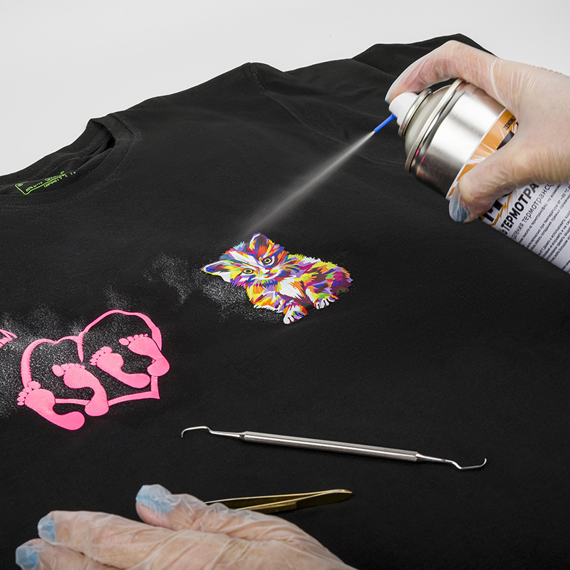 На этом этапе вас наверняка посетит искушение «помочь» спрею и начать отрывать термотрансфер, но для лучшего результата вам нужно просто немного растянуть ткань лёгкими движениями. Конечно, если позволяет её состав и плетение.