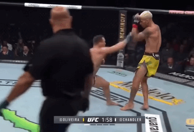 На этой недели на UFC 309 в со-главном событии вечера пройдет реванш между Чарльзом Оливейрой и Майклом Чендлером. Букмекерской видят фаворитом Чарльза Оливейру. Давайте разбирем их первый бой и силные стороны Майкл Чендлер бывший чемпион Bellator, «чемпион по тренировкам». Чендлер мощно дебютировал в UFC нокаутировав Дэна Хукера, а уже в следующем бою боролся за вакантный пояс с Оливейрой. В их бою Чендлер агрессивно начал, бросал бомбы с обеих рук, бой перешел в партер, где Чарльз пытался задушить Майкла, вышел за спину, но Чендлер сумел выйти из партера. Бой продолжился в стойке, Майкл попадает левым боковым на скачке и добавляет правый прямой, Оливейра падает в нокдаун. Чендлер пытается добить, но не получается. Раунд заканчивается, Оливейра выживает. Майкл уже задышал к концу первого раунда. В начале второго раунда бойцы идут в размен, Чендлер пренебрегает защитой и Оливейра ловит Майкла левым боковым, американский боец в нокдаун. Этот нокдаун стал началом конца, Чендлер пытае