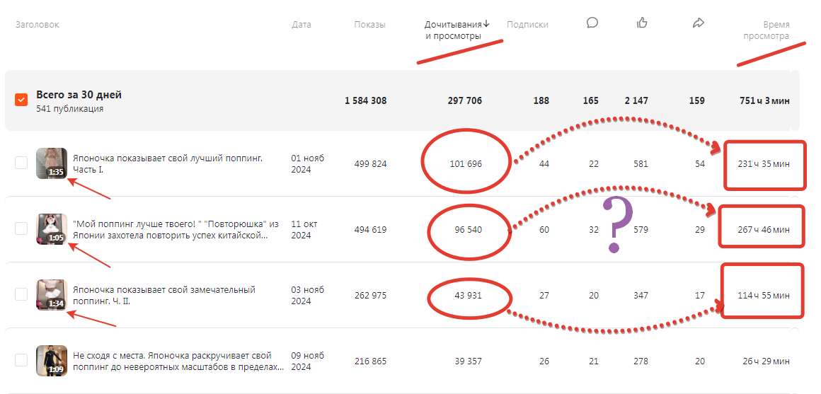Заметьте, посмотрели, но не сказано, что до конца, и этот показатель нельзя сравнивать с показателем дочитывания (количество пользователей, которые просмотрели публикацию до конца) в статистике по статьям. /Если бы в видео ввели подобный показатель и на основе его рассчитывали общее время просмотра, то авторы видеоконтента получали бы еще меньше./