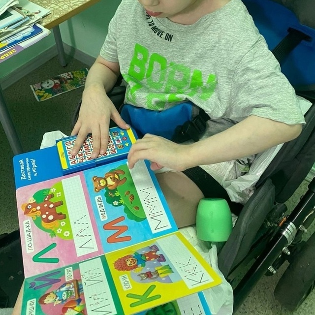 Дети обычно недолго задерживаются в больницах, их либо забирают родители, либо переводят в другие учреждения, но в этот раз один наш ребёнок задержался. За это время он обзавёлся своим имуществом 😊 : коляской, которую ему подарили волонтёры, игрушками и одеждой. Он обзавелся большим гардеробом и еще целой библиотекой! Книги он любит, вернее любит рассматривать картинки, у него врожденное к ним уважение. С удовольствием наблюдаем, как он аккуратно переворачивает странички, так делают профессионалы, которые много читают, за ребро страницы, очень бережно. Его никто этому не учил - это природный жест интеллектуала с чувствительными пальцами. За время проведённое в больнице мальчик вырос и уже может дольше сидеть в коляске и держать спину, руки стали сильнее, мышцы окрепли, и он может удерживать внимание на предмете! Его любят и тренируют все, часто жертвуя своим свободным временем. С ним остаются на ночные смены после, которых многие идут на работу, на учебу или просто заниматься своей с